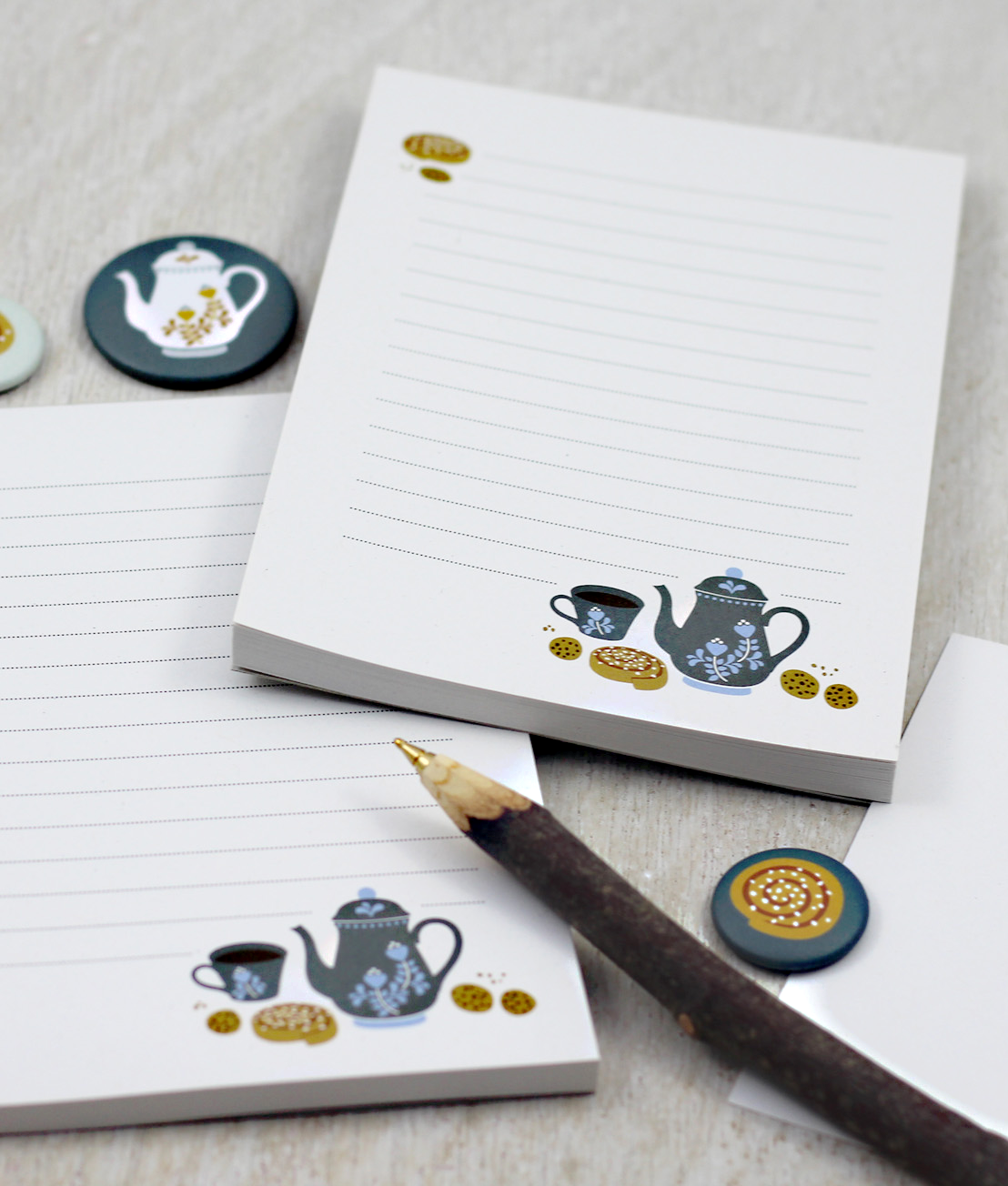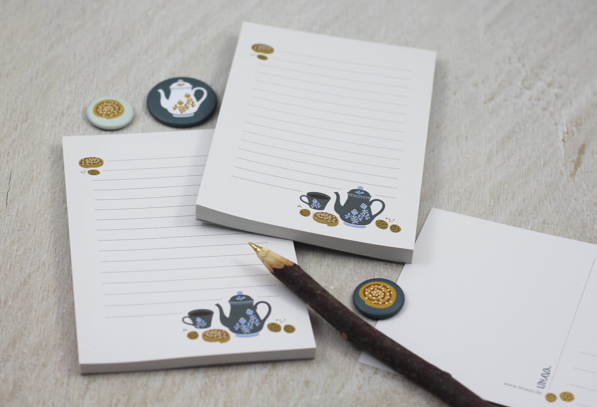 Huhu, ich bin ein Fika*block! Schreibblöcke gibt's ja zuhauf in dieser Welt, aber ich wette, du hast noch keinen mit Fikamotiv gehabt (oder verschenkt). Einkaufszettel oder Telefonnotizen flutschen doch gleich viel leichter von der Hand, wenn sich das Niedergeschriebene in unmittelbarer Nähe von Kaffeetassen- und Zimtschneckenillustrationen befindet, oder? Am besten hat man natürlich gleichzeitig noch eine echte Fika am Start.