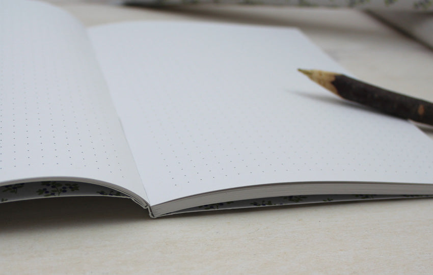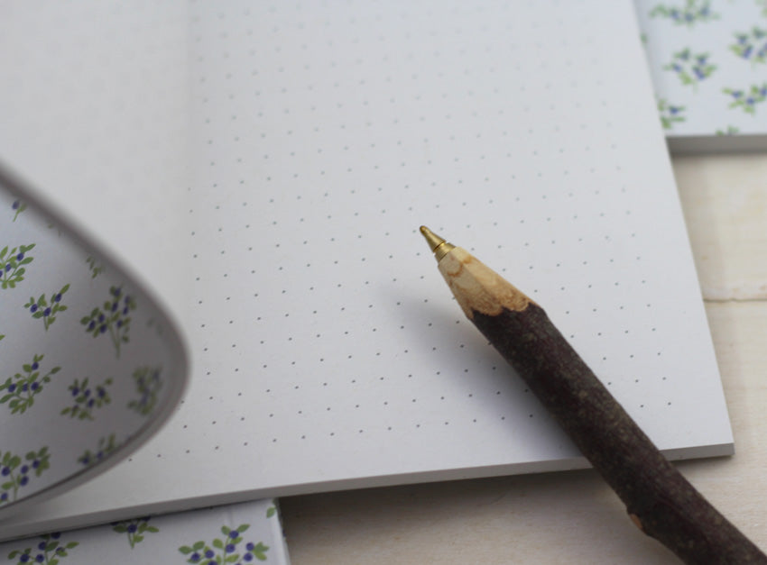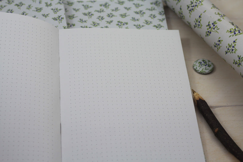 Zu den happyalisierendsten Anblicken dieser Welt zählt eindeutig der typisch skandinavische Blaubeerwaldboden – wenn einfach riesige Teppiche aus Blaubeerpflanzen alles zuwuchern, hach...! Einen winzigen Anklang daran findest du auf diesem Notizbuch: A5, naturweiß, klimaneutral gedruckt mit mineralölfreien, veganen Farben auf 100% Recyclingpapier (blauer Engel). Mit 80 Seiten Platz für Reisenotizen, Blaubeerkuchenrezepte, kitschige Sinnsprüche oder ein antikapitalistisches Manifest. Innen übrigens gepunktet, denn auch Pünktchen machen einfach immer happy – wenn auch nicht ganz so sehr wie Blaubeeren. :)