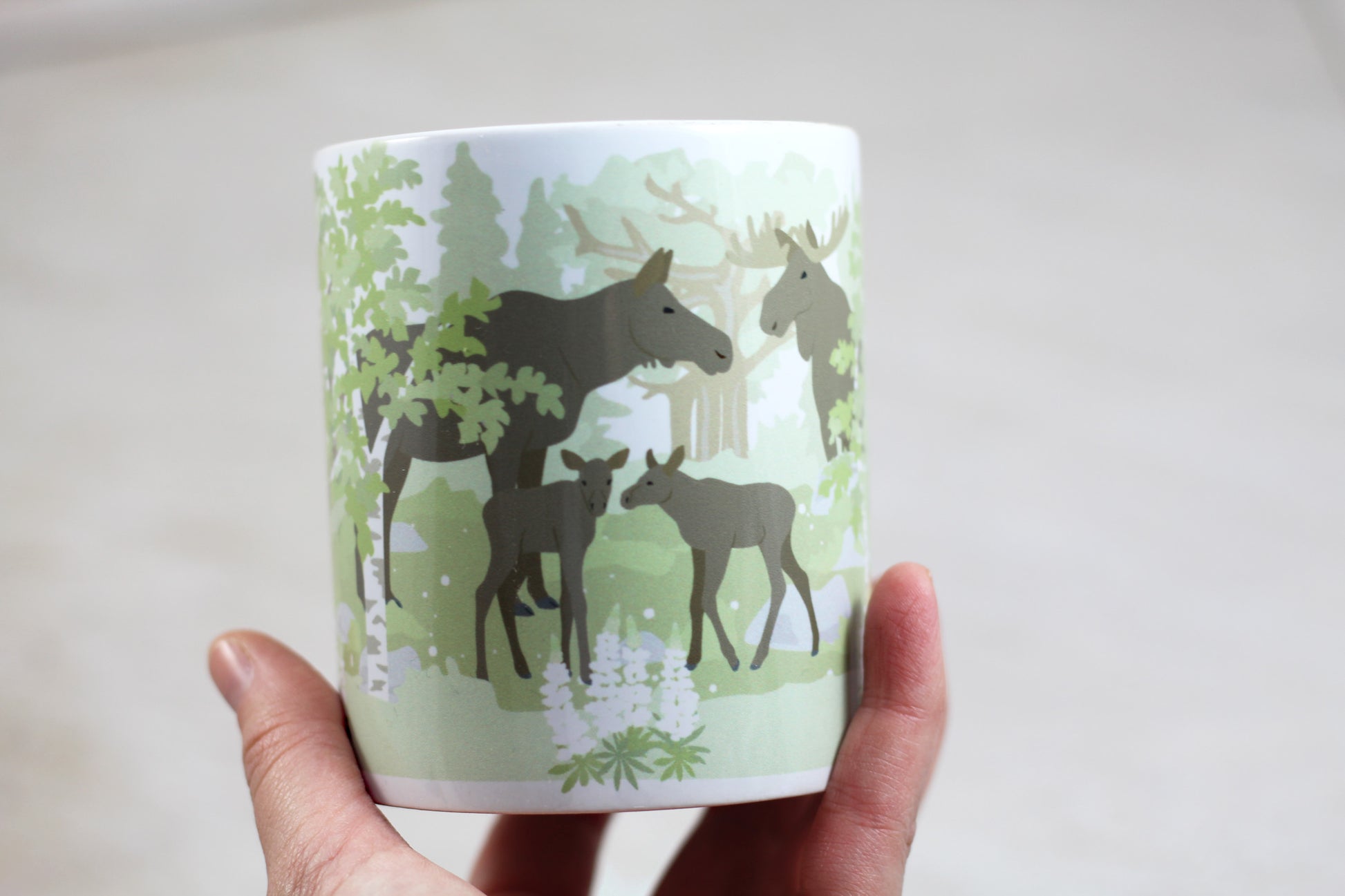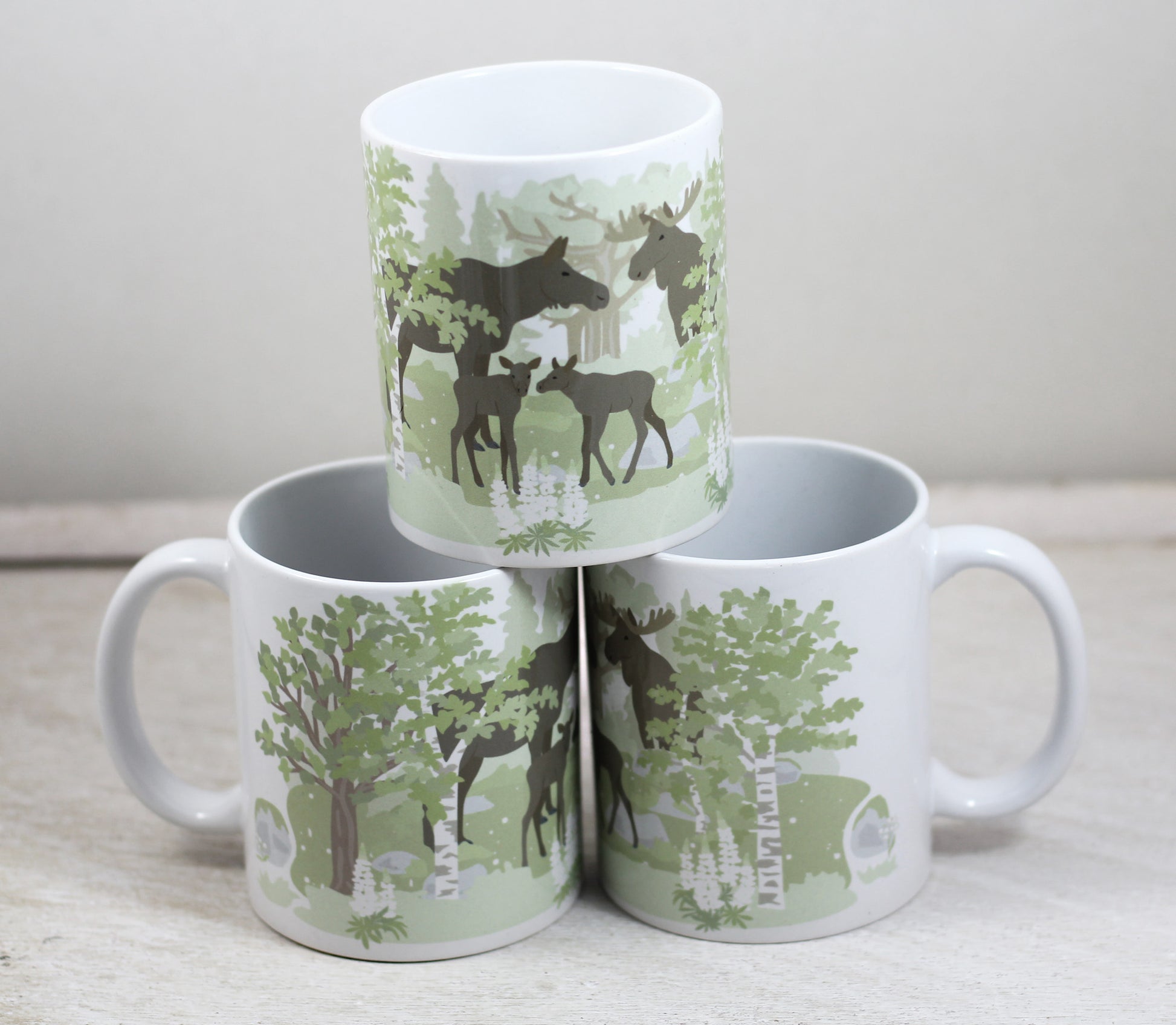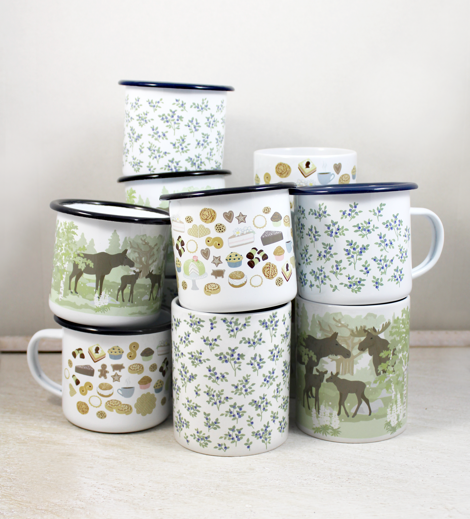 Die Elche und das Gebäck einen schwarzen Rand, die Blaubeeren einen blauen.