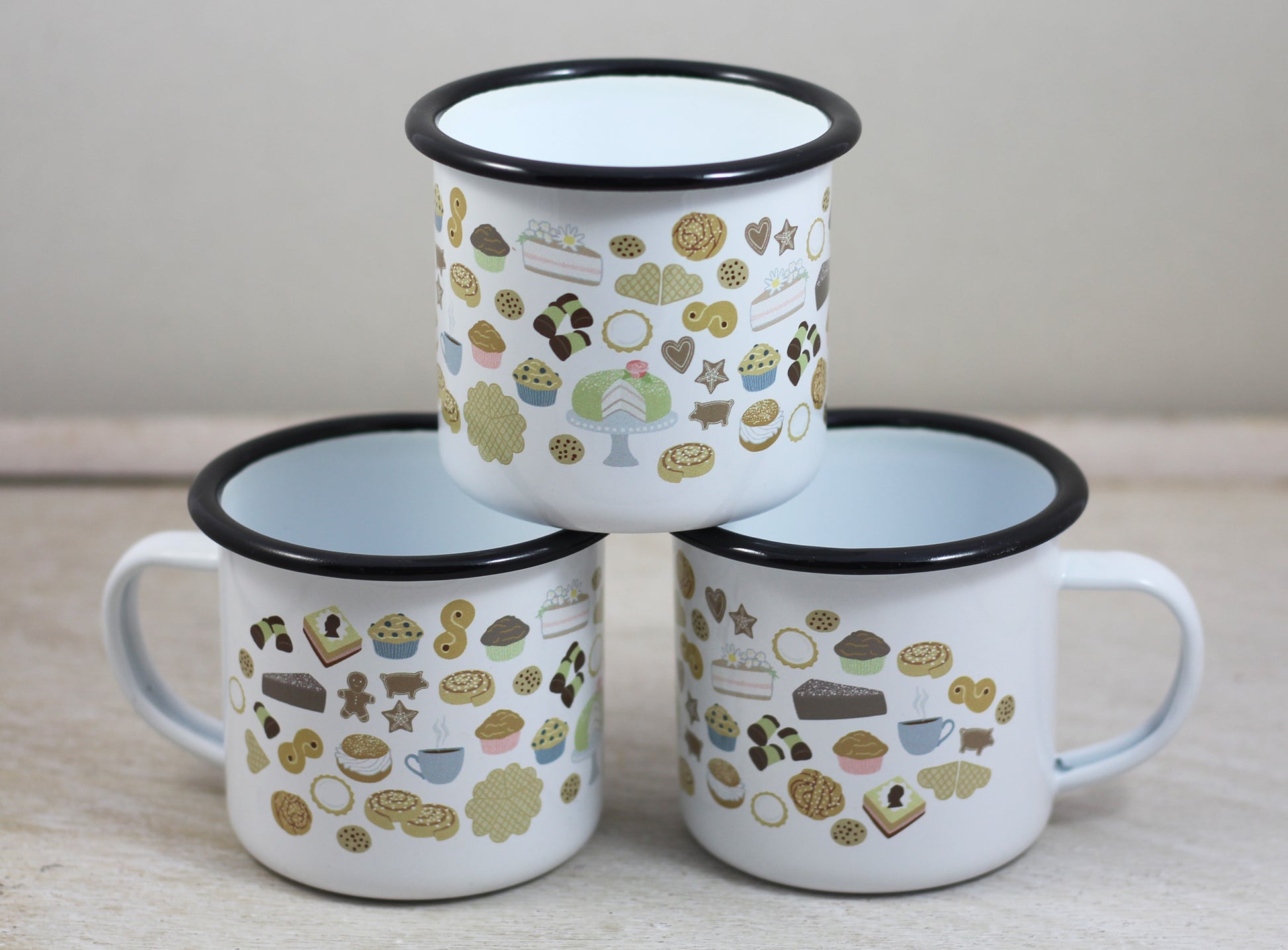 Bei den Emailletassen wird Handspülung empfohlen. Sie sind leicht, bruchsicher (campingtauglich) und haben z.T. kleine Unregelmäßigkeiten im Material, das ist aber quasi so gewollt (Retro-Look).
