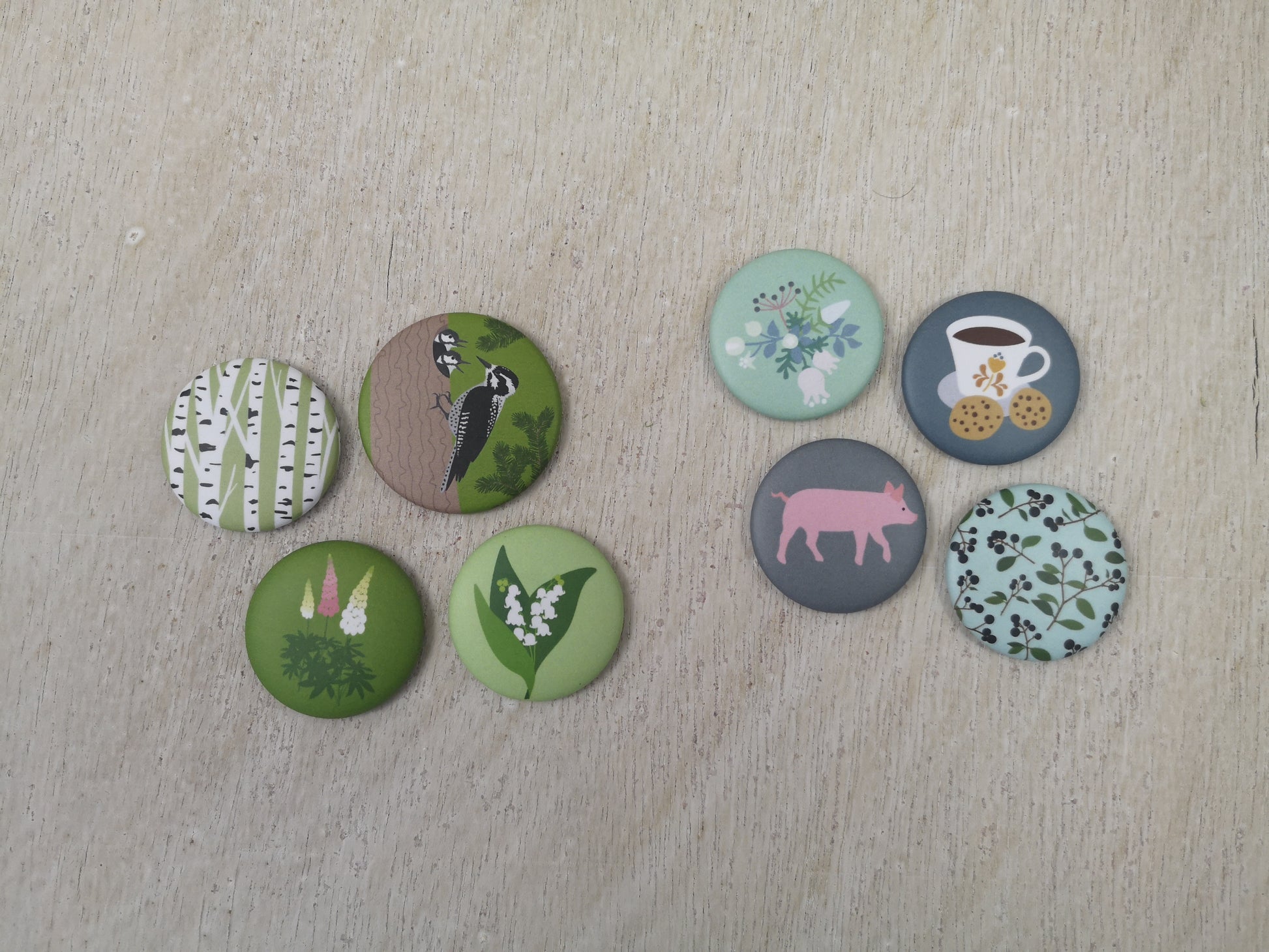 Hej, ich bin das 4-große-Magnete-Mixset. Das läuft hier wie bei Beleg-dir-deine-Wunschpizza: Such dir einfach aus dem Sortiment der „großen“ Magnete (37 oder 31 mm) vier aus! Es müssen nicht (dürfen aber) vier unterschiedliche Motive sein; du kannst mixen und matchen, wie du willst. Hauptsache, vier große Magnete. Notiere dir die Nummern deiner Lieblingsmotive und gib sie dann im Warenkorb einfach bei „Anmerkung“ ein. Ich bin gespannt auf deinen persönlichen Mix! Viel Spaß! :)