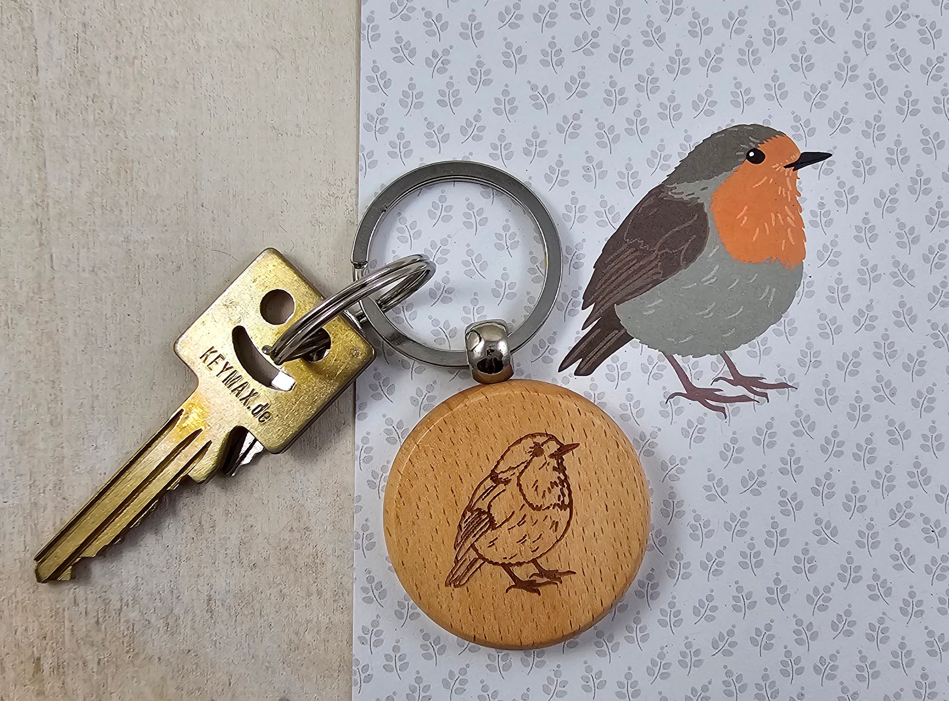 Holz-Schlüsselanhänger „Rotkehlchen“